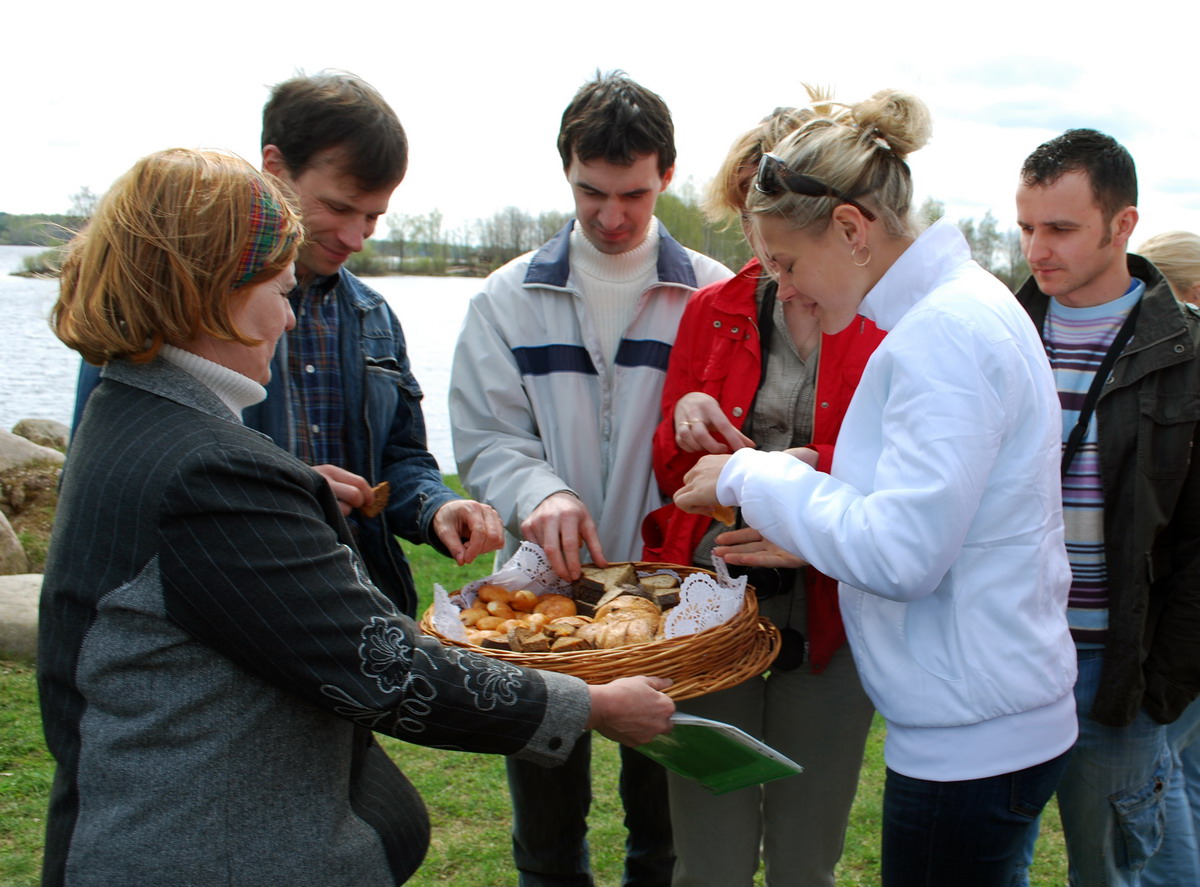 Sveiki, dārgie "Zīles" dejotāji, draugi, atbalstītāji un visi pārējie, kuriem patīk tautiņdejas. Pirms neilga laiciņa, pašā Ziedoņa dienā un Darba svētkos, mēs jau atkal metāmies deju virpuļos un šoreiz mūsu ceļš veda uz viena no latviešu populārākā (zināmākā) rakstnieka R.Blaumaņa pusi - Ērgļiem. Brauciens uz šo pilsētu izvērtās visas dienas garumā, jo pirms iepriecināt citus ar savām dejām, nolēmām gūt arī paši sev kādu intelektuālu un arī gastronomisku baudījumu. Tā pa ceļam kolektīvs iegriezās nu jau gana izslavētajā "Liepkalnu" maizes ceptuvē, kurā mums ekskursiju bija noorganizējusi mūsu pašu dejotāja Līga. Tā nu mēs tikām iepazīstināti ar gardās maizes cepšanas noslēpumiem, kā arī gide sniedza nelielu ieskatu vēsturē par tuvējo apkārtni. Šīs nelielās ekskursijas noslēgumā gandrīz katrs dejotājs piepildīja savu iepirkumu tarbiņu ar senseno spēka avotu - maizi (un citiem našķiem)!